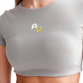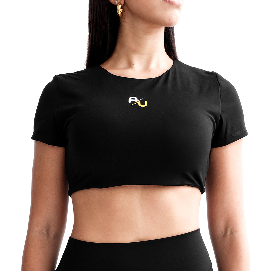 Length: Cropped fit, snug similar to a sports bra